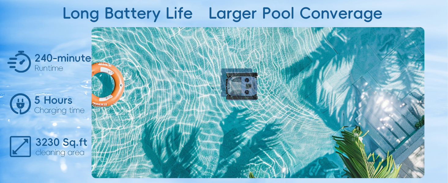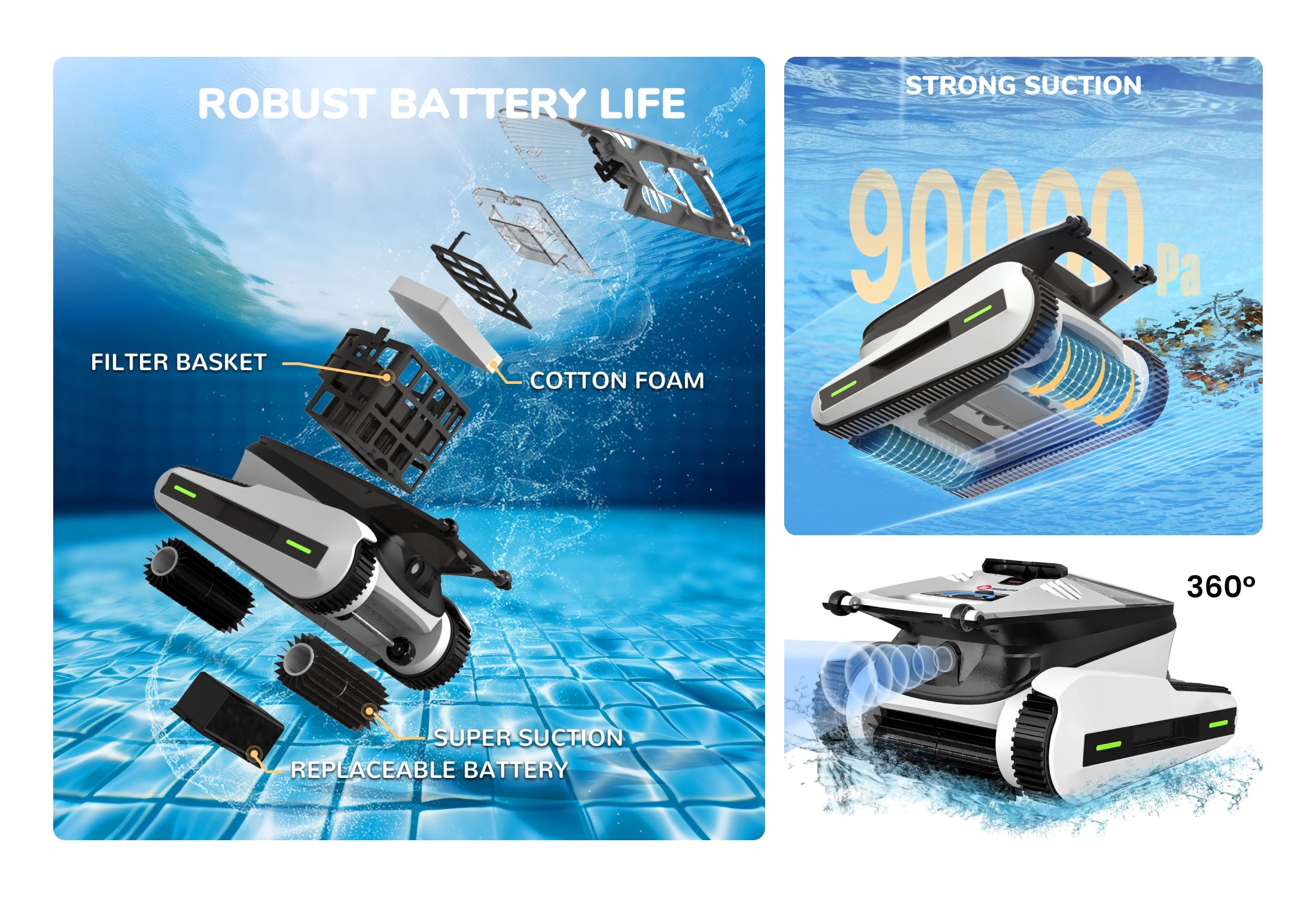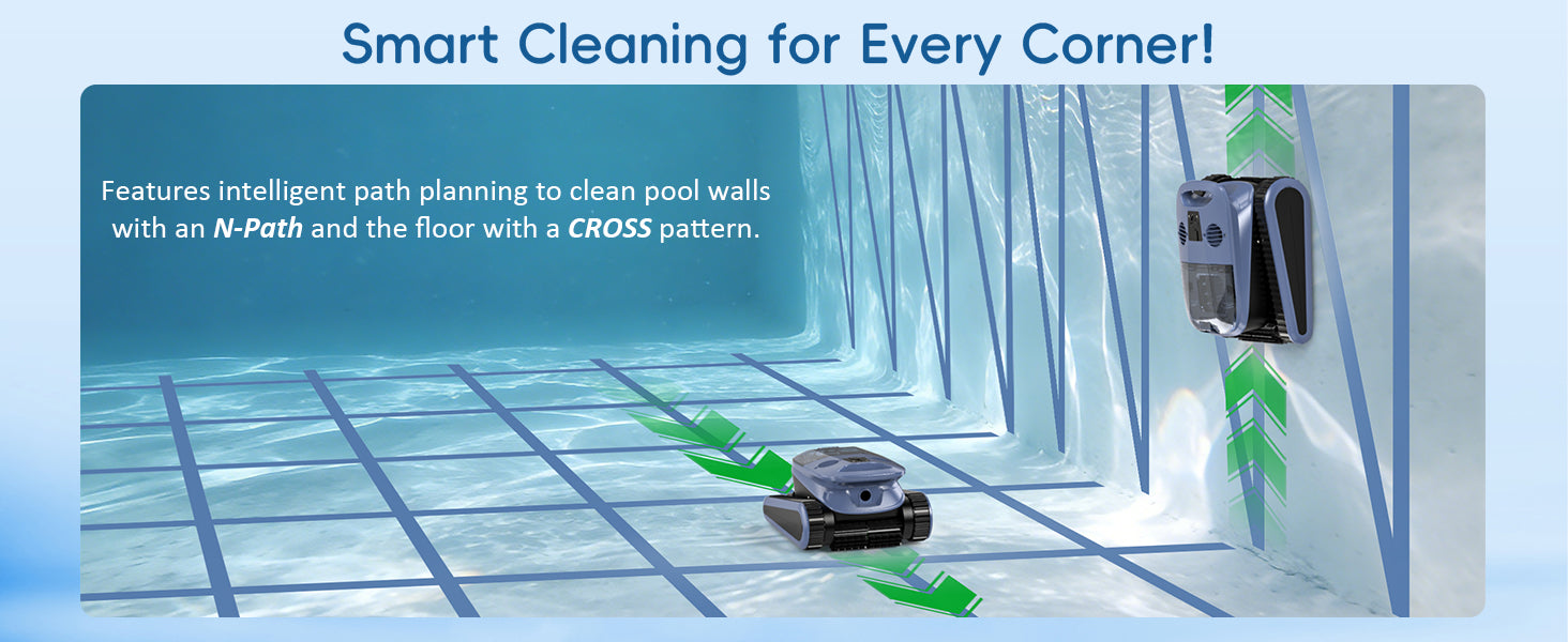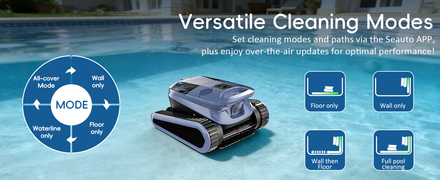 - 4 Cleaning Modes: Auto,Waterline, Floor-only, and Wall-only.